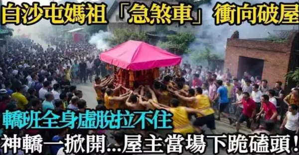 白沙屯媽祖「急剎車」不肯進廟!沖向路邊「無人破屋」狂撞門?轎班全身虛脫拉不住!神轎一掀開...屋主當場下跪磕頭!