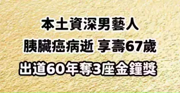 本土資深男藝人,胰臟癌病逝享壽67歲 出道60年奪3座金鐘獎…