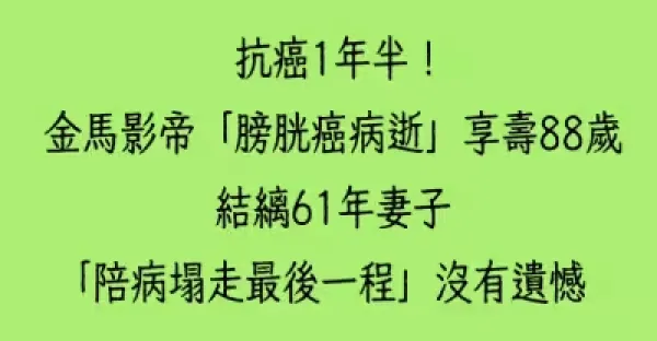 抗癌1年半!金馬影帝「膀胱癌病逝」享壽88歲 結縭61年妻子「陪病塌走最後一程」沒有遺憾!