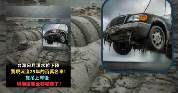 台灣日月潭水位下降,驚現一輛沉沒25年的百萬名車! 拖吊上岸撬開後車廂,現場遊客全都嚇傻了!
