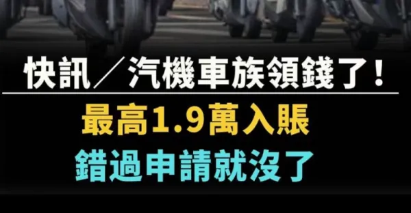 快訊/汽機車族領錢了! 最高1.9萬入帳,錯過申請就沒了