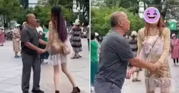 大爺和「靚女」廣場跳舞引注目!飄逸秀髪逆天長腿卻「毀在一個回眸上」,網驚:背影殺手,秒變正面「兇手」