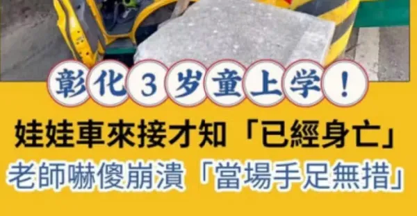 快訊/彰化3歲童上學!娃娃車來接才知「已經身亡」 老師嚇傻崩潰「當場手足無措。」