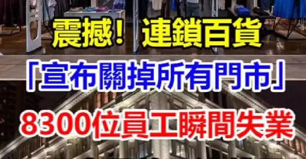 震撼!連鎖百貨「宣布關掉所有門市...」8300位員工瞬間失業「6月中開啟下波裁員」