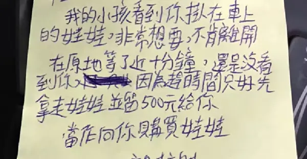 重機掛娃娃「家長喊小孩想要...」留紙條就拿走!車主傻眼「沒看到有給錢」調監視器找到人了...