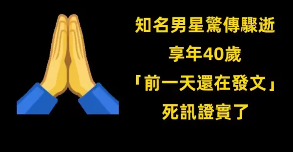 知名男星驚傳驟逝,享年40歲!「前一天還在發文」 死訊證實了