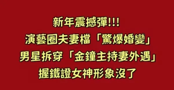 新年震撼彈!!! 演藝圈夫妻檔「驚爆婚變」男星拆穿「金鐘主持妻外遇」 握鐵證女神形象沒了