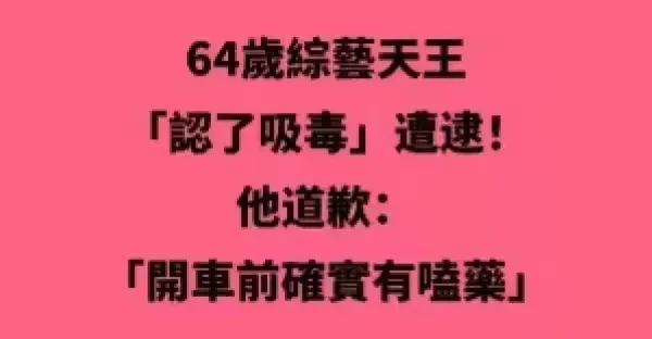 64歲綜藝天王「認了吸.毒」遭逮!!! 他道歉:「開車前確實有嗑.藥...」