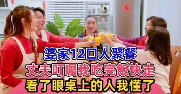 婆家12口人聚餐,丈夫叮囑我吃完飯快走,看了眼桌上的人我懂了
