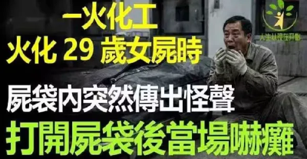 火化工火化29歲女屍時,屍袋內突然傳出怪聲,他開啟屍袋當場癱坐在地