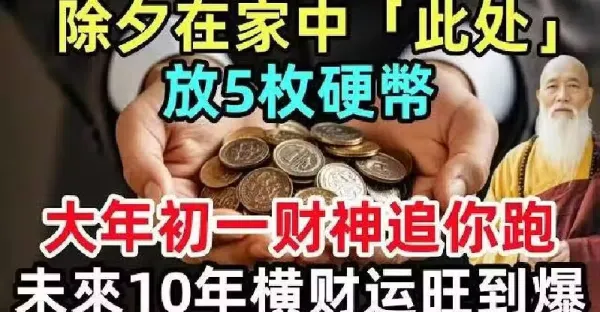 錯過再等20年!除夕在家中「這個地方」放5枚硬幣,大年初一就有橫財降臨,未來10年想窮都難!