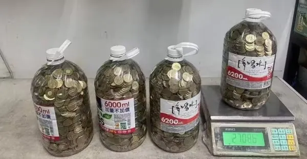 存了4大桶「50元硬幣」重達108公斤!總價值揭曉他驚訝:居然沒半枚是假的