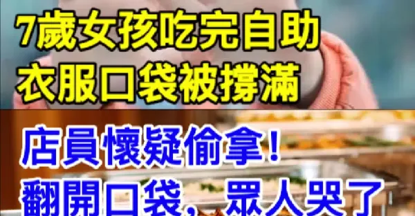 7歲女孩吃完自助,衣服口袋被撐滿,店員懷疑偷拿!結果翻開口袋,眾人哭了