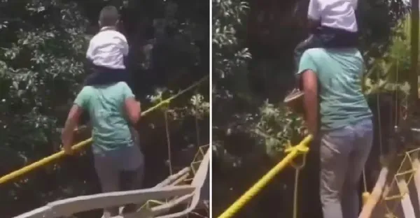 抱兒坐肩上走獨木橋,媽「腳滑踩空」男童下秒慘墜溪谷:實時影片瘋傳