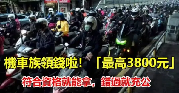 機車族領錢啦!「最高3800元」符合資格就能拿,錯過就充公!