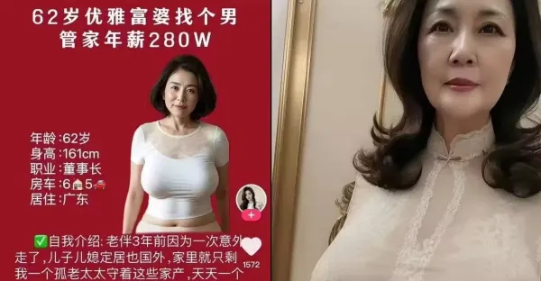 網傳 62 歲優雅富婆找男管家,提供千萬年薪!