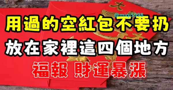 用過的「空紅包」不要扔!放家裡「這4個地方」福報、財運暴漲