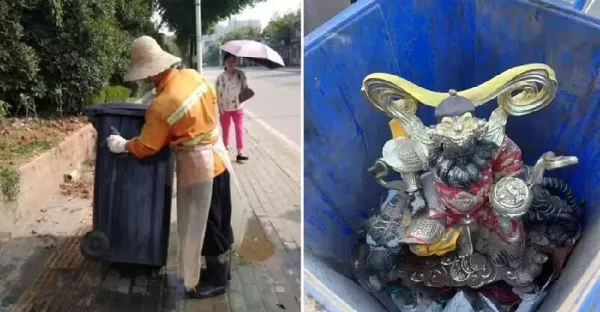 佛像「扔垃圾桶」骯髒不堪!拾荒老人看清「佛像全貌」後直言:此人後果不堪設想