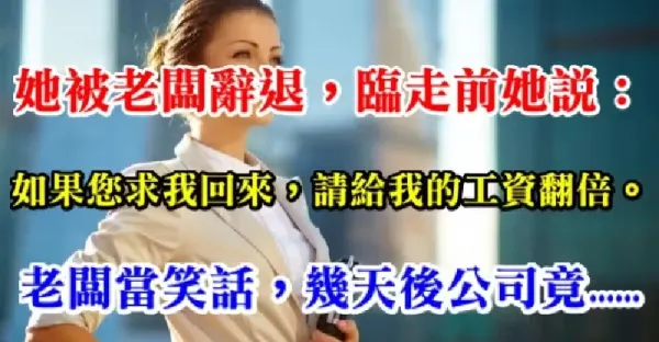 她被老闆辭退,臨走前她說:如果有天,您求我回來,請給我的工資翻倍。老闆當笑話,幾天後....