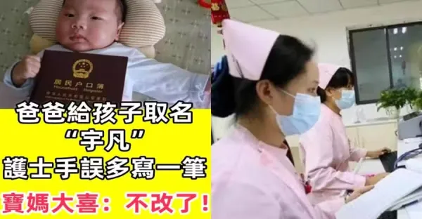 爸爸給孩子取名「宇凡」,護士手誤多寫一筆,寶媽大喜:不改了