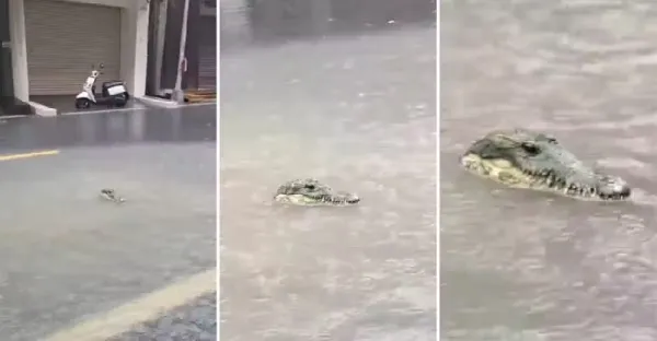 颱風天拍高雄淹水「一隻鱷魚飄過」,鏡頭放大後,萬人一看吃驚!