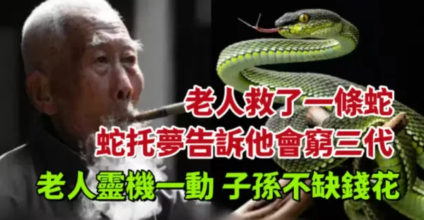老人救了一條蛇,蛇託夢告訴他會窮三代,老人靈機一動,子孫不缺錢花
