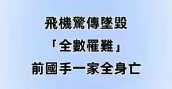 快訊 / 飛機驚傳墜毀「全數罹難」 前國手一家全身亡...