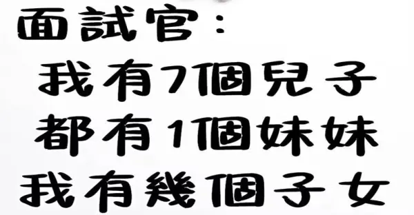 面試官:我有7個兒子,都有1個妹妹,我有幾個子女?小伙回答得太機智了