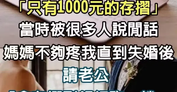 結婚時,媽媽給我一本 「只有1000元的存摺」,當時我被很多人說閒話,媽媽不夠疼我,直到失婚後,請老公「拿存摺到銀行跑一趟」,銀行竟嚇報警~
