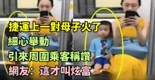 捷運上一對母子火了,舉動引來周圍乘客稱讚,網友:這才叫炫富