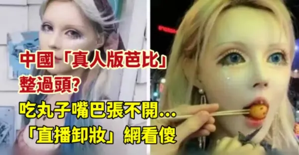 中國「真人版芭比」整過頭?吃丸子嘴巴張不開...「直播卸妝」網看傻