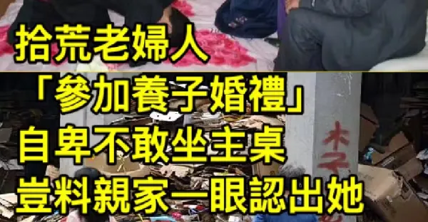 拾荒老婦人「參加養子婚禮」自卑不敢坐主桌 豈料親家一眼認出她「當場下跪磕頭」