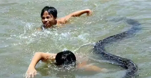 海南小孩被激流捲走,一條蟒蛇迅速救下孩子,男人:它是在報恩