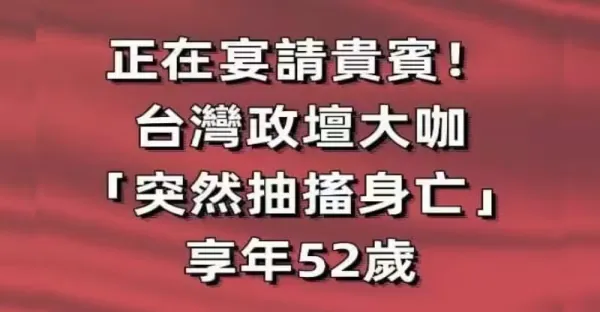 正在宴請貴賓 台灣政壇大咖 「突然抽搐身亡」享年52歲!