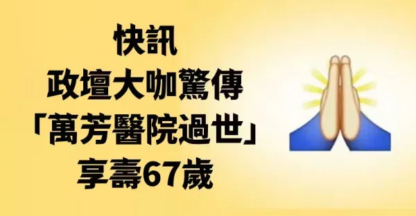 快訊/政壇大咖驚傳「萬芳醫院過世」享壽67歲