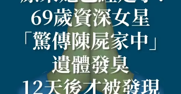原來她已經走了!70歲資深女星「驚傳陳屍家中」遺體發臭....12天後才被發現!