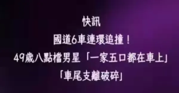 快訊/國道6車連環追撞!49歲八點檔男星「一家五口都在車上」 「車尾支離破碎」 驚險過程曝…