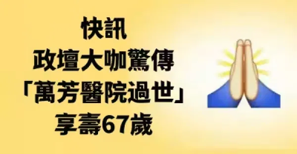 快訊/政壇大咖驚傳「萬芳醫院過世」 享壽67歲!