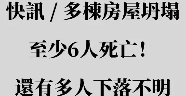 快訊/多棟房屋坍塌,至少6人死亡!還有多人下落不明!