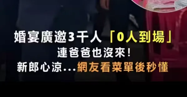 婚宴廣邀3千人「0人到場」,連爸爸也沒來 新郎心涼... 網友看菜單後秒懂
