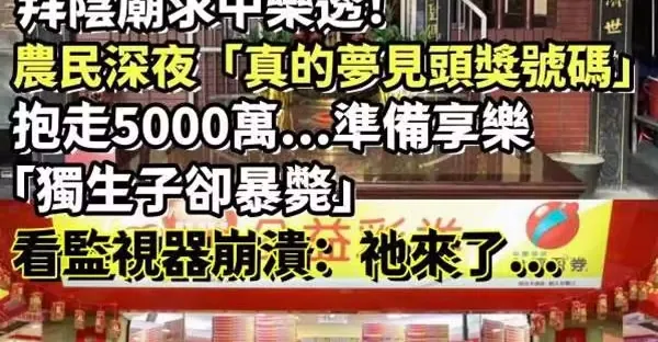 拜陰廟求中樂透!農民深夜「真的夢見頭獎號碼」抱走5000萬...準備享樂「獨生子卻暴斃」看監視器崩潰:祂來了...