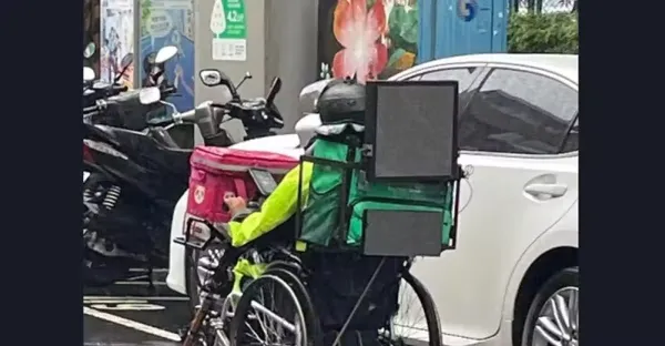 下雨天不休息!外送員「冒雨坐輪椅」努力跑單 一張照片感動千人:謝謝您