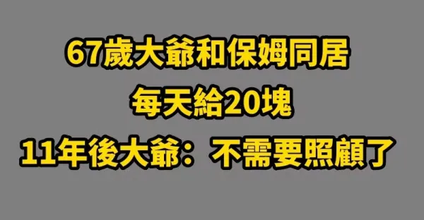 67歲大爺和保姆同居,每天給20塊,11年後大爺:不需要照顧了