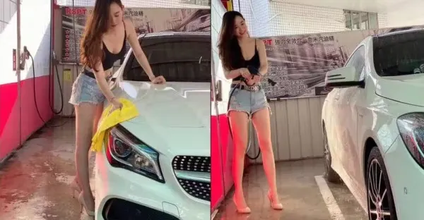 自助洗車驚見「神極長腿妹」!網友:穿這樣洗車要逼死誰」本人現身引網友暴動