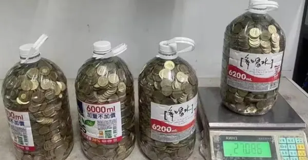 存了4大桶「50元硬幣」重達108公斤!總價值揭曉他驚訝:居然沒半枚是假的👍