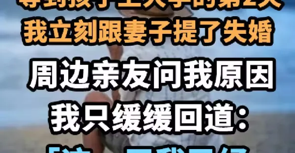 我今年45歲,跟老婆結婚了20多年,等到孩子上大學的第2天,我立刻跟妻子提了失婚….周邊親友問我原因,我只緩緩回道:「這一天我已經等了10年了,終於解脫了…」