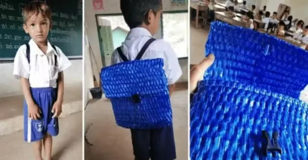 買不起書包!窮爸做粗工「錢全給兒子繳學費」 自責熬夜「一綑塑膠繩做出獨一無二書包」一打開惹哭老師