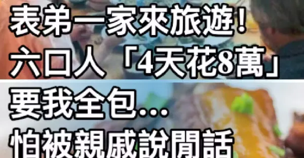 表弟一家來旅遊!六口人「4天花8萬」要我全包…怕被親戚說閒話我忍了,臨走時「他的一個行為」讓我決定不再往來