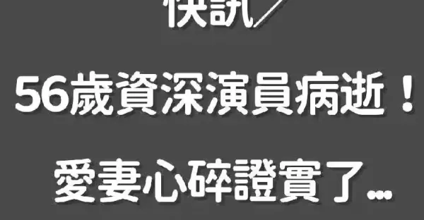 快訊/56歲資深演員病逝! 愛妻心碎證實了!