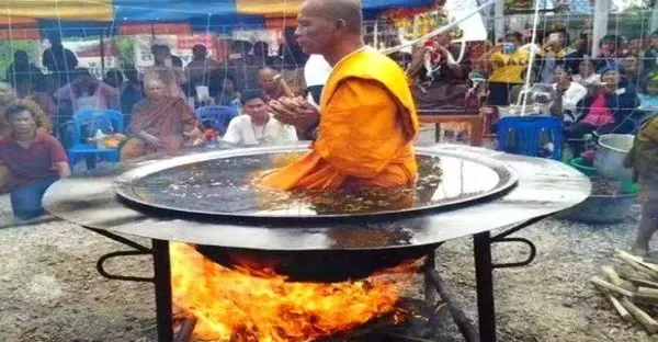 高僧表演「滾油鍋里打坐」,被遊客當場揭穿,原來套路這麼深